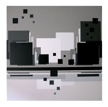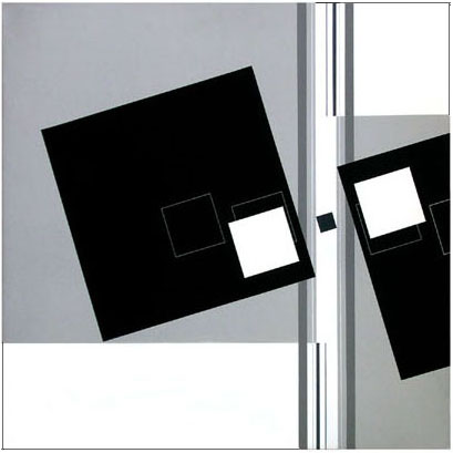 Au sein de ce climat rigoureux la courbe est bannie. chaque terme s'inscrit dans une problématique rationaliste dont l'agencement procède d'une grande sobriété de moyens. Verticales et obliques, angles et plans dialoguent pourtant sans dureté et scellent leurs destinées sans heurt. A cela il faut ajouter la vivacité d'un chromatisme subtilement dominé qui exalte l'essor austère de ces rythmes silencieux.